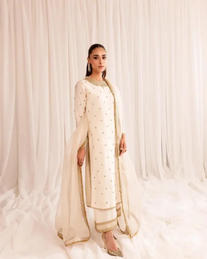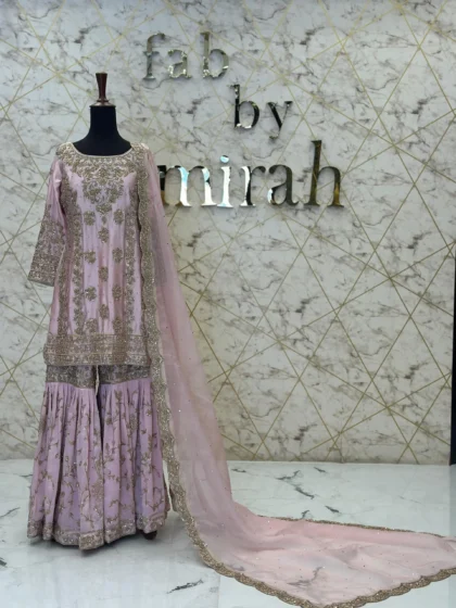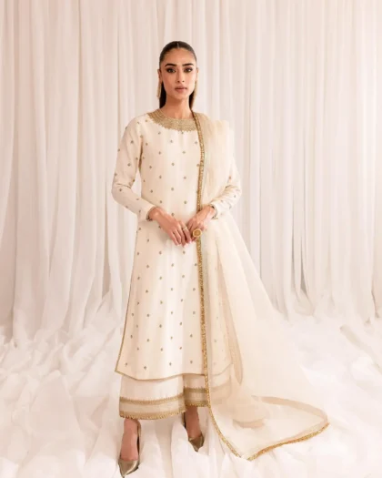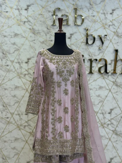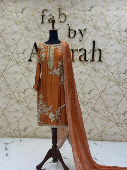 - Embroidery: Intricate hand-embroidery in gold/antique gold tones.
