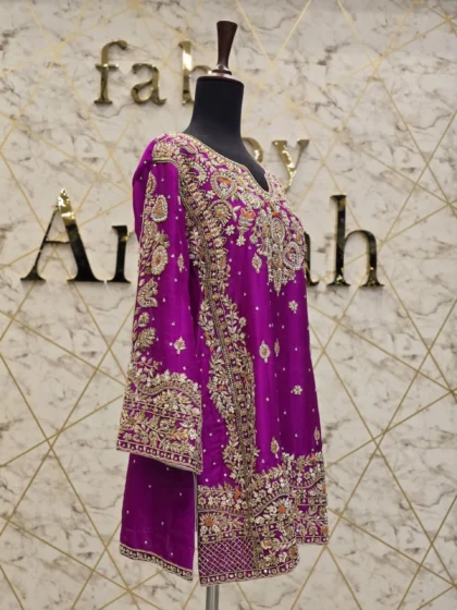 Peach Raw Silk Pishwas – Heavy Zardozi Mughal Walima Bridal