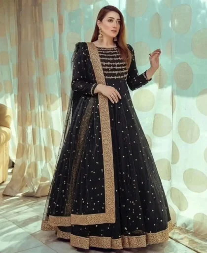 Elegant Black Net Maxi Dress for Parties