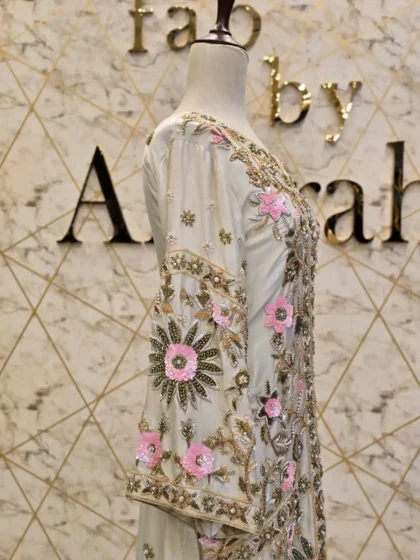 - Style: Modern Pakistani three-piece suit with a straight shirt and trousers.