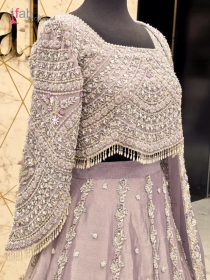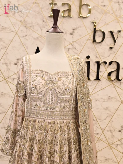 Step into unparalleled sophistication with this Beautiful Front Open Gown Dress by Fab By Amirah. This magnificent ensemble is a true celebration of Pakistani heritage and contemporary luxury, perfect for a modern bridal trousseau, high-end wedding wear, or the most formal of events.