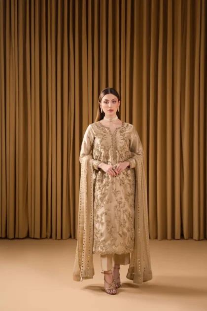 Radiate elegance at your next event with this enchanting green party wear dress, meticulously handcrafted by Fab by Amirah. This exquisite piece features intricate hand embroidery, showcasing a perfect blend of traditional and contemporary artistry.